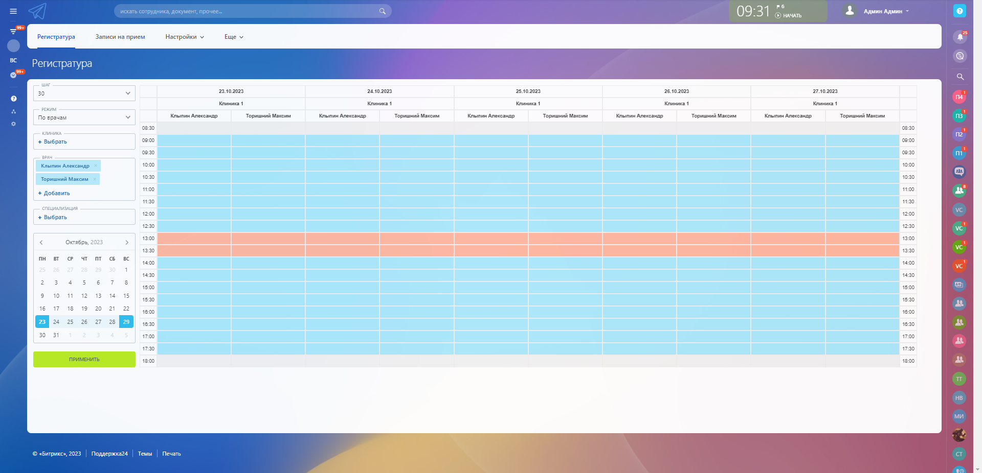 - Резервы врачей и кабинетов